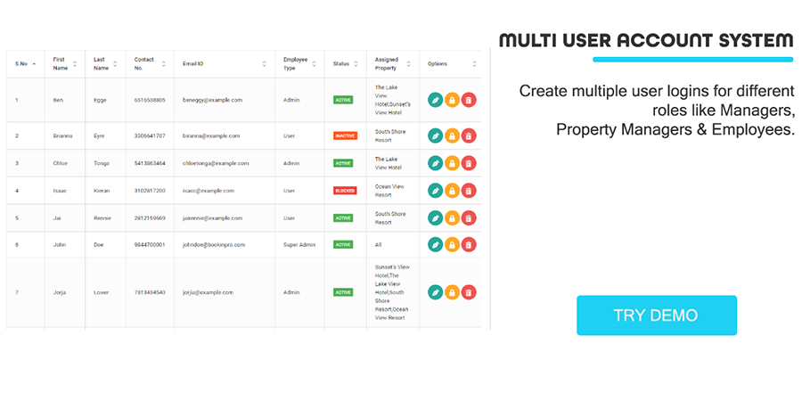 Bookinpro is an online Accommodation Booking Management System which helps you manage multiple properties & bookings on the go. It also helps you manage your employees, their roles, customers and their outstanding payment.