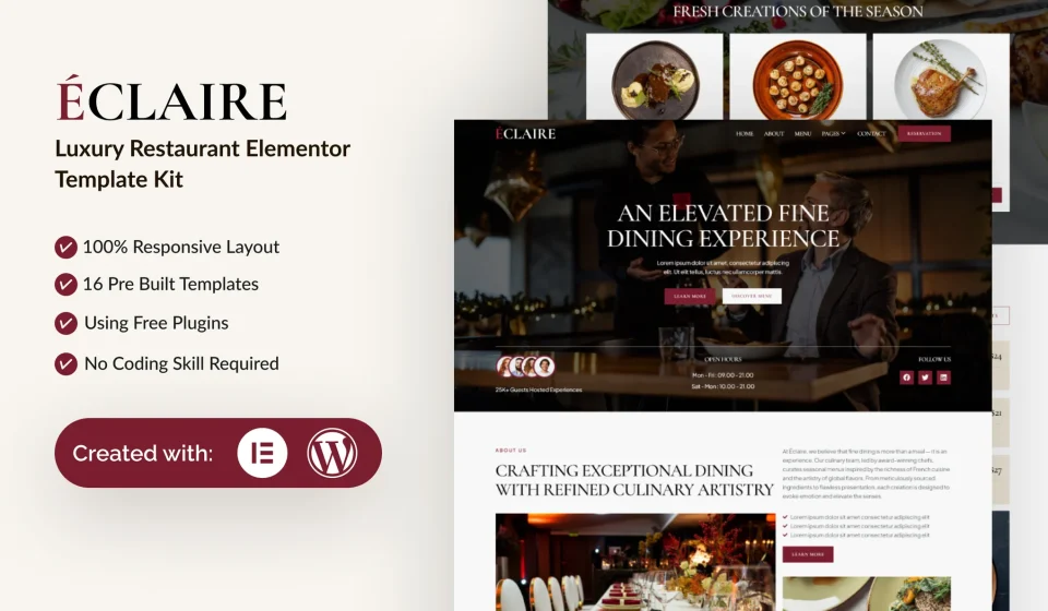 کیت المنتور Eclaire – قالب سایت رستوران لاکچری و کافه