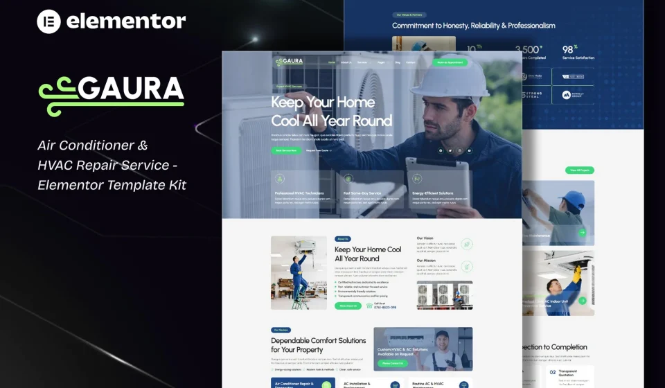 نکته مهم: این محصول یک پوسته وردپرس نیست، بلکه یک “کیت تمپلیت” حاوی دادههای طراحی برای المنتور است. Gaura انتخابی هوشمندانه برای متخصصان تهویه مطبوع است که میخواهند تخصص فنی خود را در یک ویترین دیجیتال مقتدر و منظم به مشتریان نمایش دهند.
